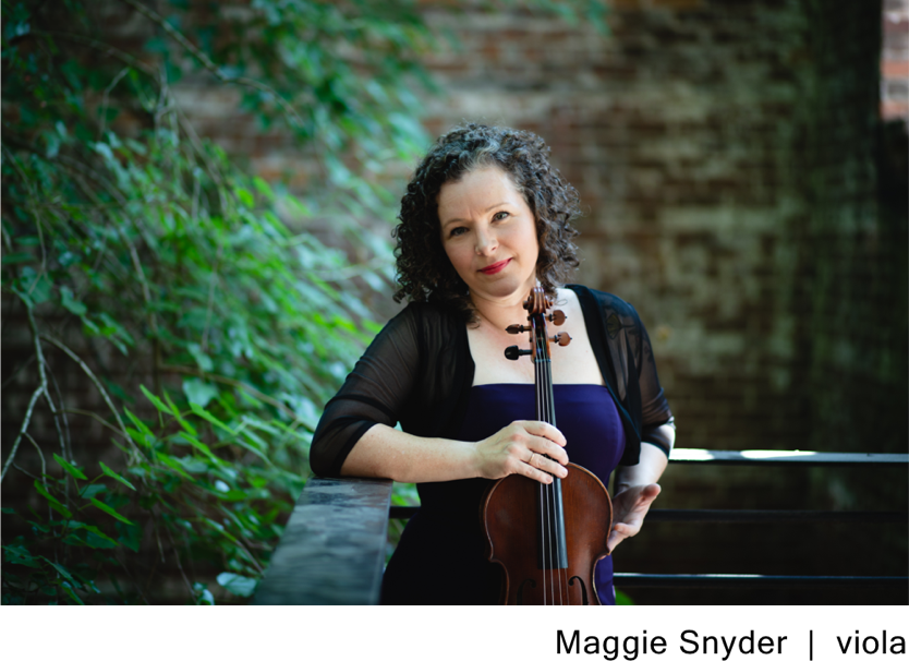 Violist Maggie Snyder is Professor of Viola at the University of Georgia, Principal Violist of the Chamber Orchestra of New York, with whom she records for Naxos, and is on the Artist-Faculty of the Brevard Music Festival. She has performed solo recitals, chamber music, concertos and as an orchestral musician throughout the United States and abroad in such halls as the Kennedy and Kauffman Centers, all three halls at Carnegie Hall, Merkin Hall, Spivey Hall, and the Seoul Arts Center, and in Greece, Korea, and Russia. She has performed under the batons of Yuri Temirkanov, David Zinman, Robert Spano, Leonard Slatkin, James dePriest, Julius Rudel, James Conlon, Keith Lockhart, and Michael Tilson Thomas, and at such festivals as the Brevard Music Festival, the Sewanee Summer Music Festival, and the Aspen Music Festival where she was a Time Warner Fellow. In 2001, Ms. Snyder was a semi-finalist at the 8th Primrose International Viola Competition, and made her recital debut in Weill Recital Hall at Carnegie Hall with her sister duo, Allemagnetti in 2009. The group was called a "winning pair" with a "highly promising debut" by the New York Concert Review. She has performed chamber music with members of the Cleveland and Tokyo Quartets, Jonathan Carney, the Aspen String Trio, Jon Manassee, Ivo Van der Werff, Itamar Zorman, and Norman Kreiger, among others. Her solo recordings, "Modern American Viola Music" and "Allemagnetti – Music for Viola and Harpsichord" are represented exclusively through Arabesque Recordings and available through iTunes and amazon.com. Her latest solo recording, titled “Viola Alone: Old New and Borrowed,” was released on Arabesque Records in January 2018 and features the premiere of a new piece commissioned by Ms. Snyder by Libby Larsen. She was the 2018 recipient of the University of Georgia’s Creative Research Medal in the Arts and Humanities for her project commissioning and recording new works for viola. Her latest collaborative recording featuring the works written for her by Leonard “Chic” Ball titled “Worlds Translucent” with Tim Lovelace and Michael Heald, was released on PARMA in 2019. Ms. Snyder has given master classes, clinics, and recitals at universities and music schools throughout the country, including The Universities of Michigan, Colorado, Minnesota, Michigan State, Tennessee, Kentucky, South Carolina, Interlochen, Hartt, and Converse College, among others. Ms. Snyder earned graduate degrees from The Peabody Conservatory of Music, where she was the teaching assistant for Victoria Chiang. Her Bachelor's degree is from the University of Memphis, where not only she was born and raised, but where she was a Pressar Scholar.