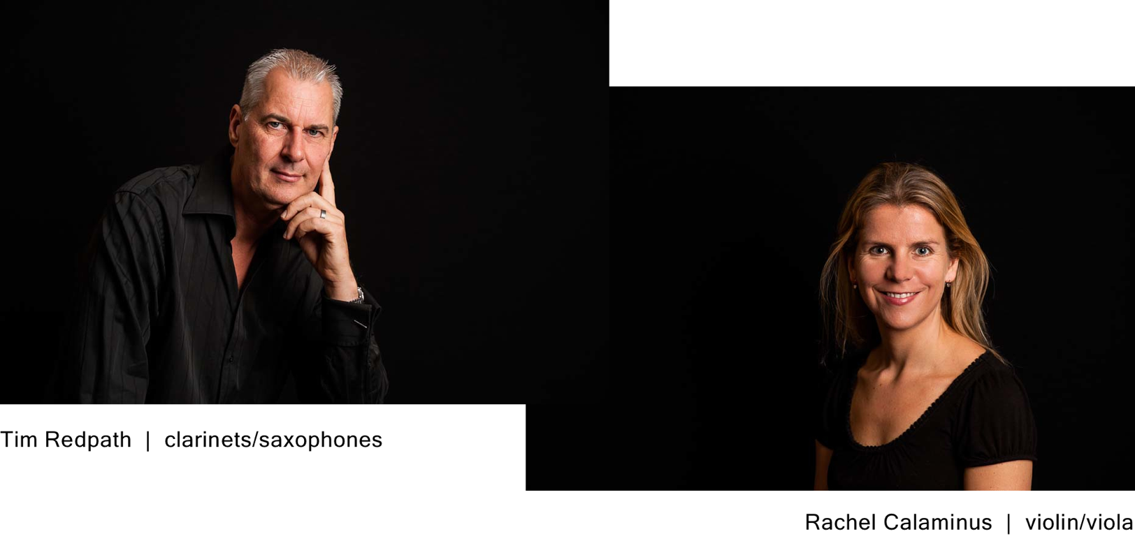 Trifarious is a vibrant contemporary ensemble comprising Tim Redpath (clarinet/saxophone), Rachel Calaminus (violin/viola) along with associate collaborative musicians including pianists Nicola Meecham and Alex Wilson. Its unique and diverse instrumentation opens up an ever-expanding sound world with which to perform and promote new music. Formed in 2012, Trifarious has created its own distinctive sound and repertoire and has established itself as a shining light in the world of new music. The ensemble has accrued original repertoire for a variety of instrument combinations from leading national and international composers. The five sound worlds of clarinet, saxophone, violin, viola and piano are all at the disposal of both performer and composer and are complimented by a variety of extended platforms including Akai’s EWi (Electronic Wind Instrument) and acoustic instrument DPA microphones and amplification. The ensemble enhances its concerts with its own stage lighting and video projection.